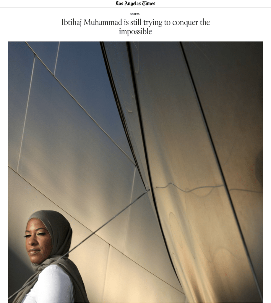 While women dared to refuse Iran’s compulsory veiling laws for international sporting events other women in the US are hailed for trying to normalise this practice. Surely though, if one is focused on the sport and tries to be defined beyond one’s appearance, one would not care if competitors or the public can see one’s hair. Image source.