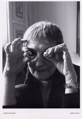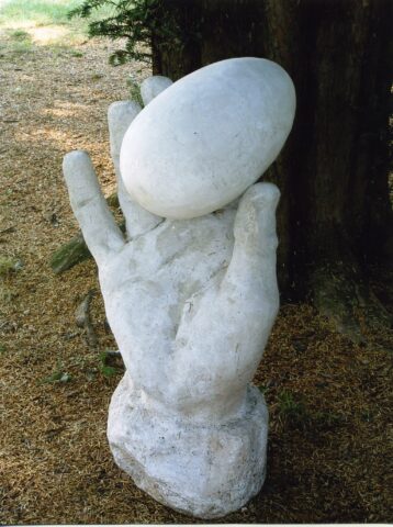 Les explications des oeuvres de l’artiste Mirella Bentivoglio ont été paraphrasées/traduites depuis l’article de Mariella Pasinati (L’uovo universale di Mirella Bentivoglio). Les oeuvres dans la “galerie” sont tirées du site officiel de l’artiste.