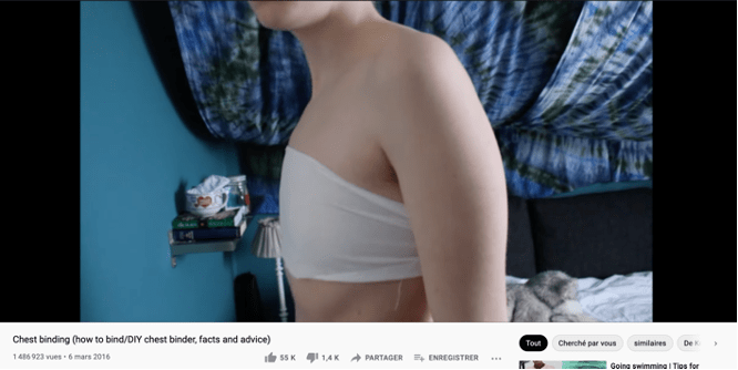 While in the US or the UK, chest binding is a tool of expression, in parts of Cameroon, it is associated to breast ironing. The first picture is a screenshot from a “gender expression and affirming” store, the second a photo of a very young girl who underwent breast ironing, the third is a screenshot of a young teenage girl binding her breasts.