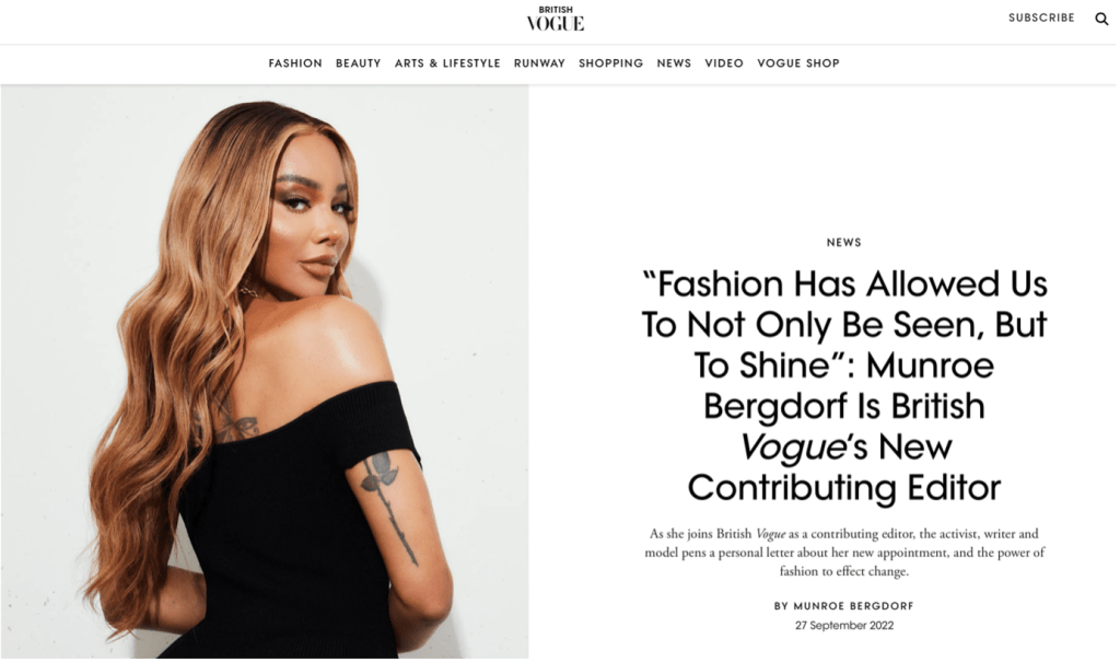 Clockwise from left: covers of the special National Geographic issue on gender; the ironic campaign by UN against stereotypes, “UNstereotype”, featuring a man, Munroe Bergdorf, claiming womanhood by resorting to stereotypes associated to women; a screenshot of Munroe Bergdorf’s essay on how fashion helps him define his identity.