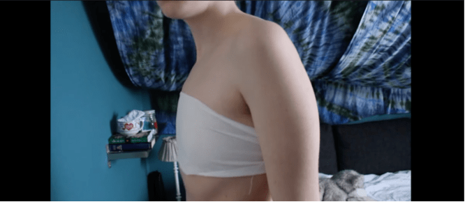 Sotto: una ragazza in Inghilterra che presenta sul suo canale YouTube come bendarsi i seni.